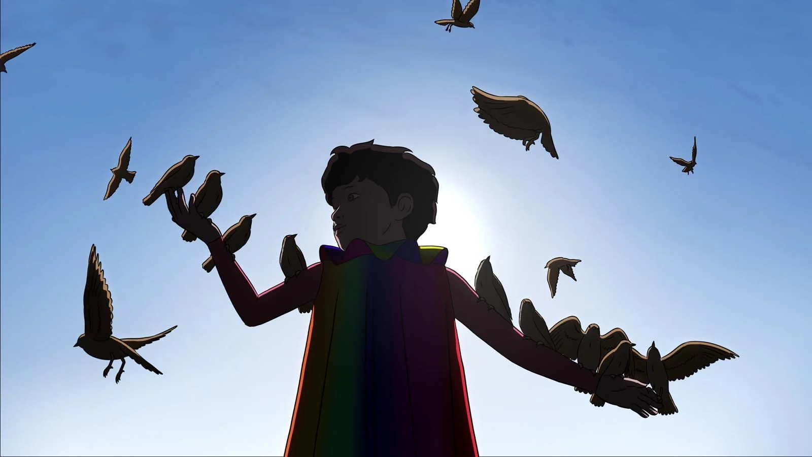 En 2075, une petite fille de 10 ans, Iris, voit un mystérieux garçon vêtu d’une combinaison arc-en-ciel tomber du ciel. C’est Arco. Il vient d’un futur lointain et idyllique où voyager dans le temps est possible. Iris le recueille et va l’aider par tous les moyens à rentrer chez lui.